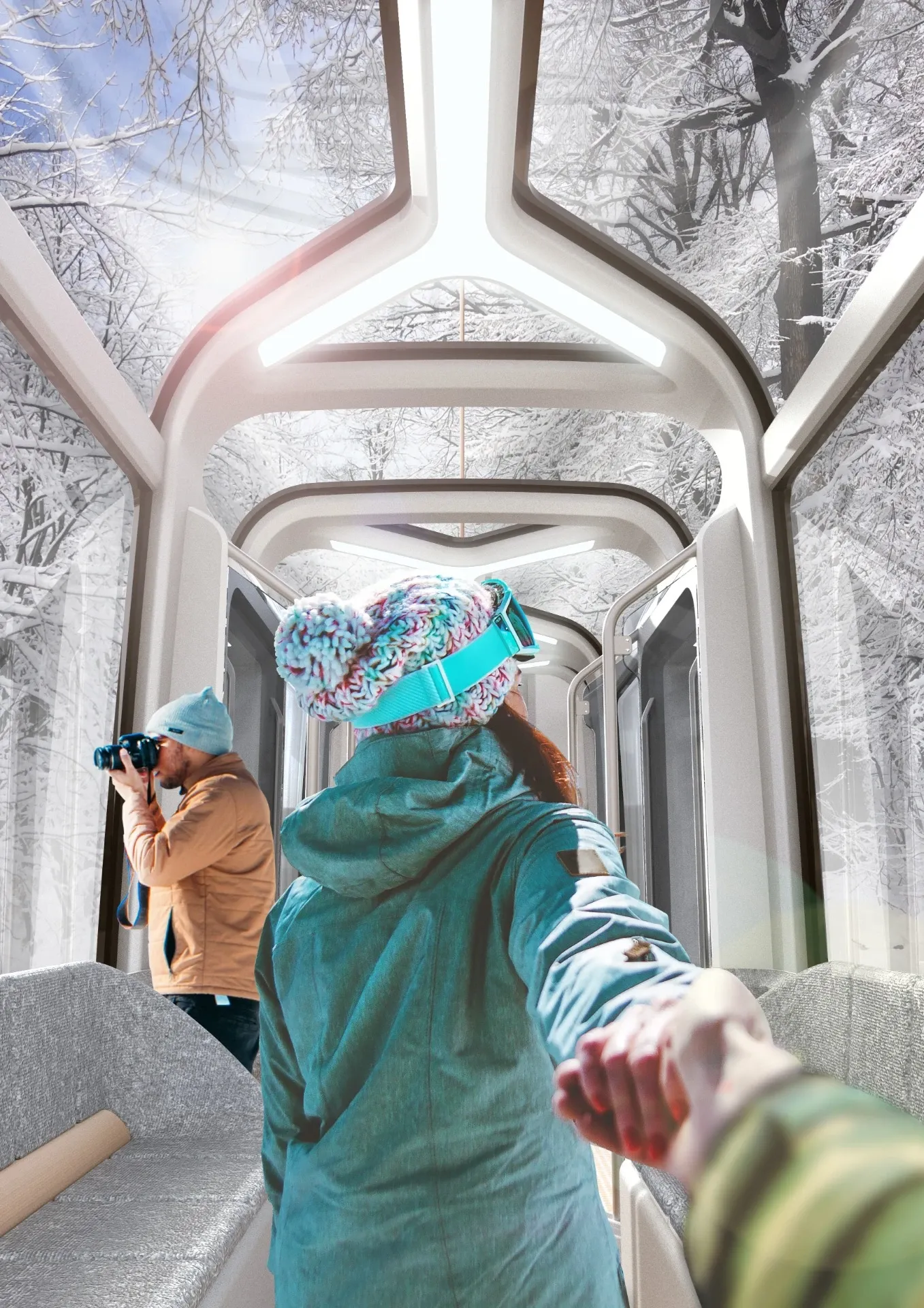 Az új FOGAS VISION 360° kocsiszekrény külső formavilága letisztult, határozott vonalvezetést követ. A történelmi fogaskerekű karakteres megjelenése inspirálta ezt a futurisztikus, teljesen új dizájnt. Az üvegfelületek és a pirosra festett elemek kontrasztja erős vizuális identitást ad a járműnek. Az egyedi, kifejezetten erre a projektre tervezett forma és jellegzetes sziluett modern, előremutató koncepciót alkot, amely új technológiai szintet képvisel. A legnagyobb attrakció a teljes panorámatető és a nagy ablakfelületek, amelyek kényelmes és élvezetes utazási élményt nyújtanak.